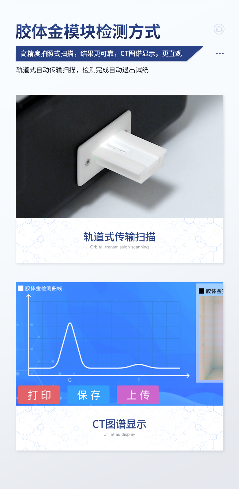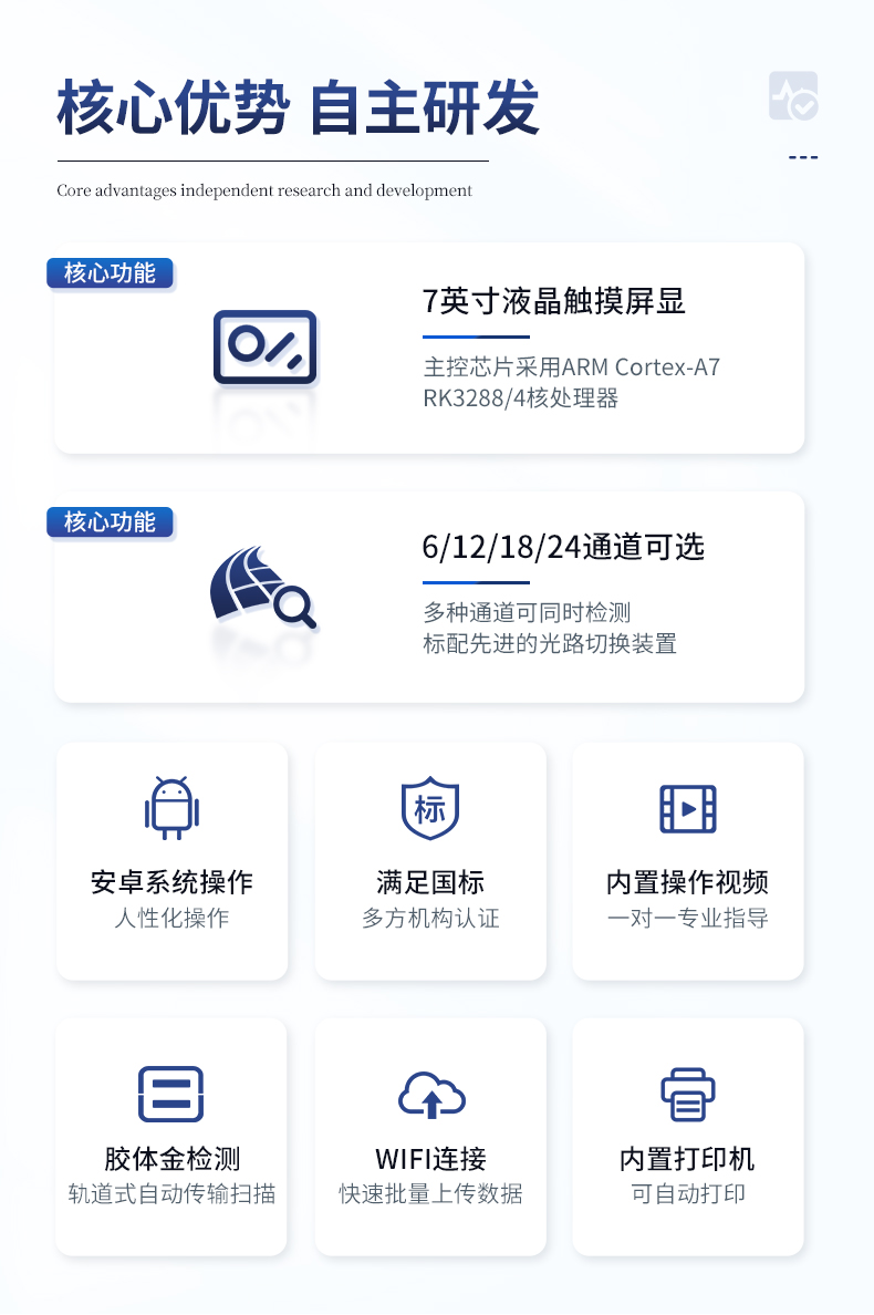 6、膠體金模塊檢測方式:軌道式自動傳輸掃描,檢測完成后自動退出檢測卡。