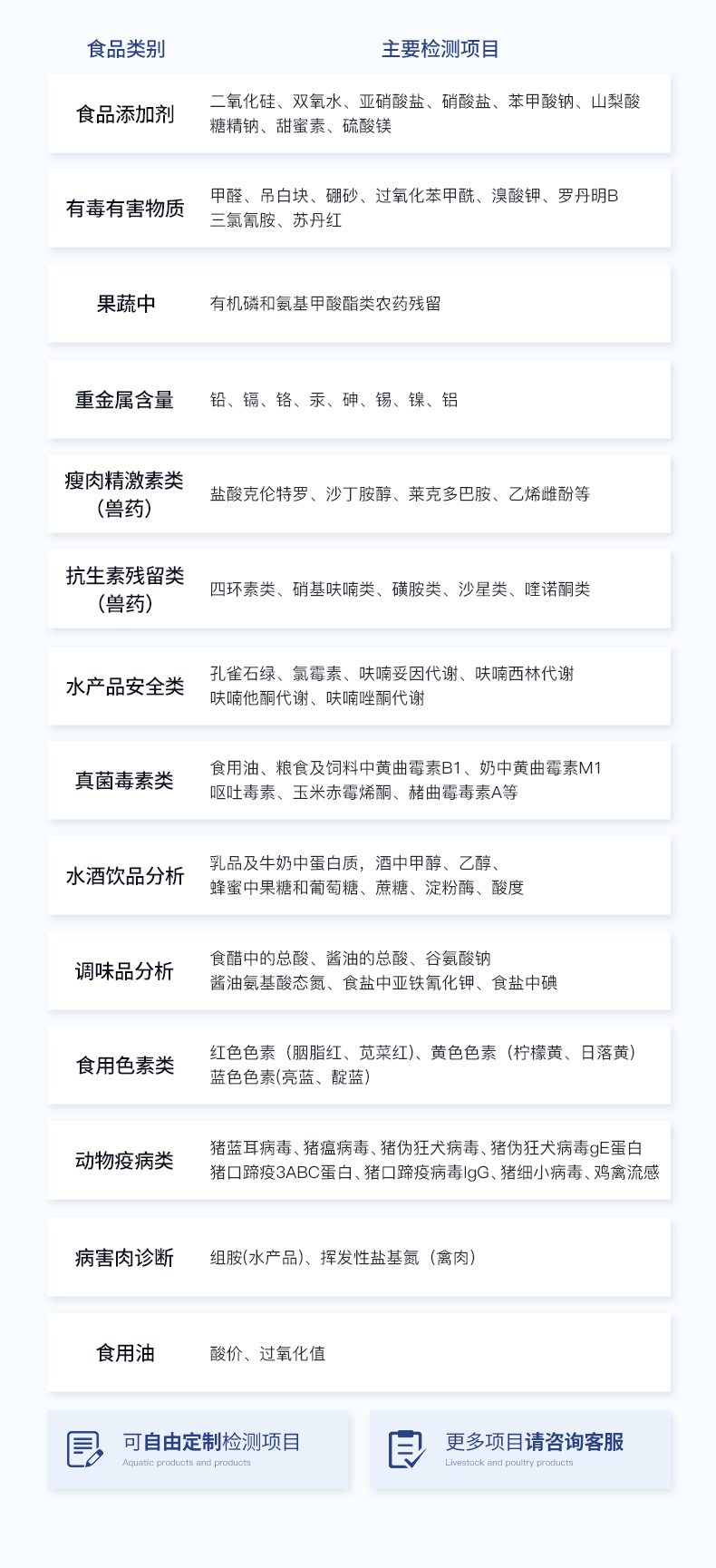 5 | 甜蜜素 | 100次/套 | 40 | 苯甲酸 | 100次/套 |