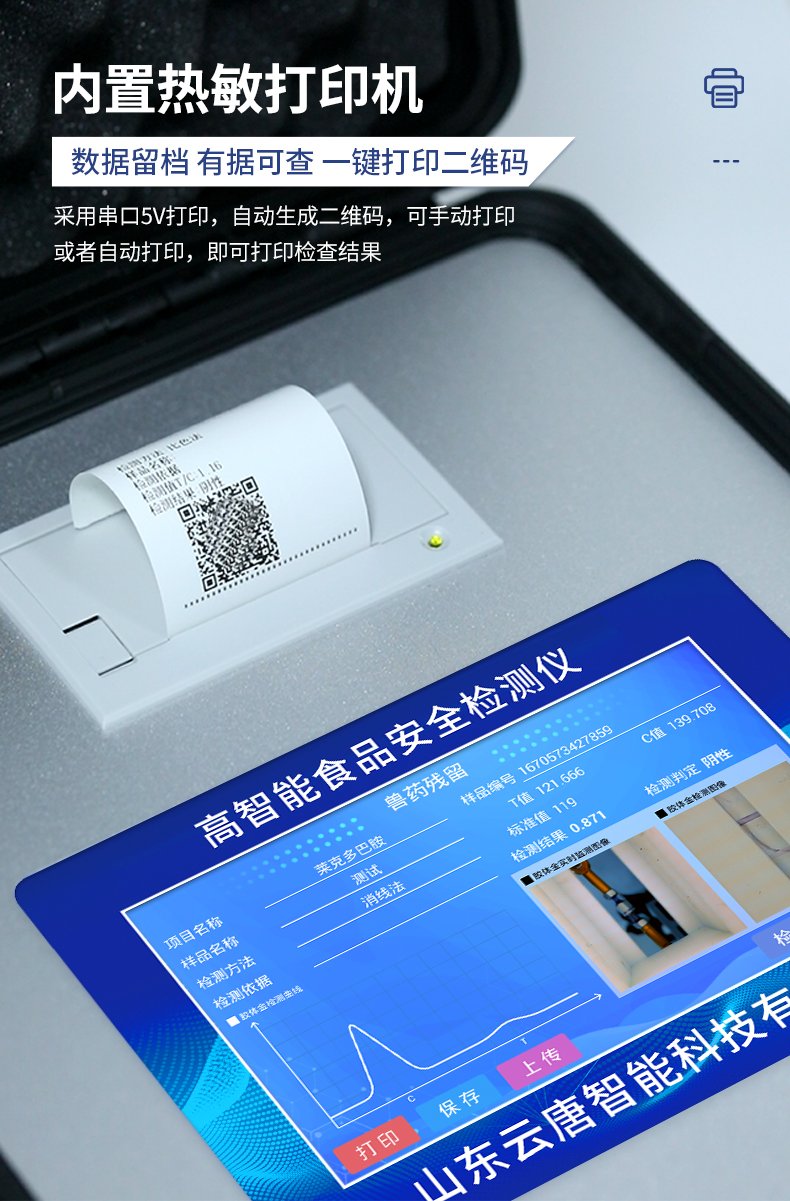 3、新一代高速熱敏打印機,檢測完成可自動打印檢測報告和二維碼。