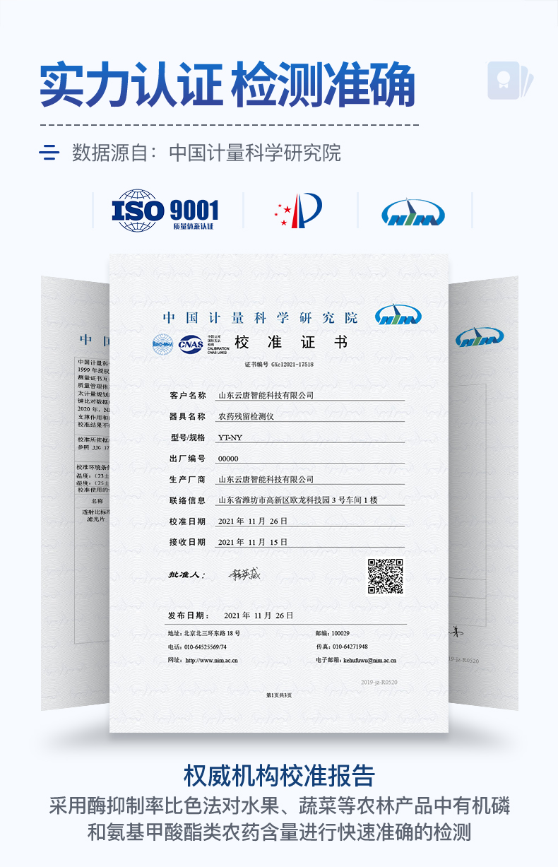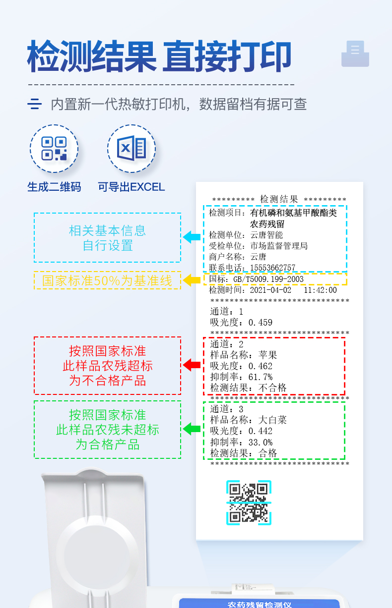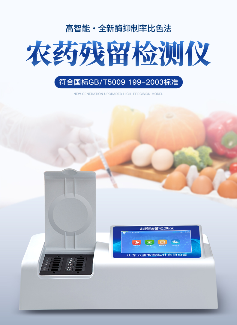 檢測標(biāo)準(zhǔn):依據(jù)國家標(biāo)準(zhǔn)方法(GB/T5009.199-2003)以及世界衛(wèi)生組織WHO、世界糧農(nóng)組織FAO殘留農(nóng)藥檢測標(biāo)準(zhǔn)、世界環(huán)境保護(hù)局EPA參照攝入量等要求來設(shè)計(jì)。采用酶抑制率比色法對水果、蔬菜等農(nóng)林產(chǎn)品中有機(jī)磷和氨基甲酸酯類農(nóng)藥含量進(jìn)行快速準(zhǔn)確的檢測。