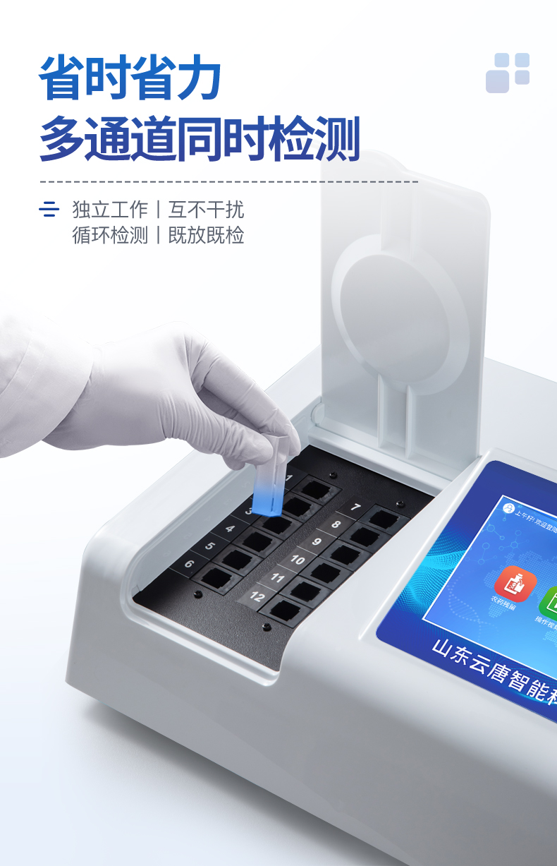 農殘檢測設備8個檢測通道,可以同時測試多個樣品,循環檢測,即放即檢,每個樣品由程序控制分別獨立工作,不會互相干擾。 熱線:133-7109-8225