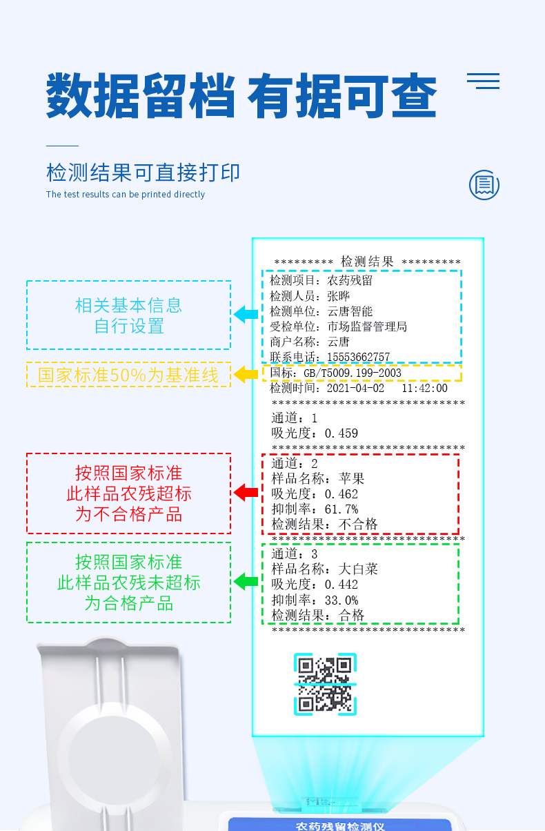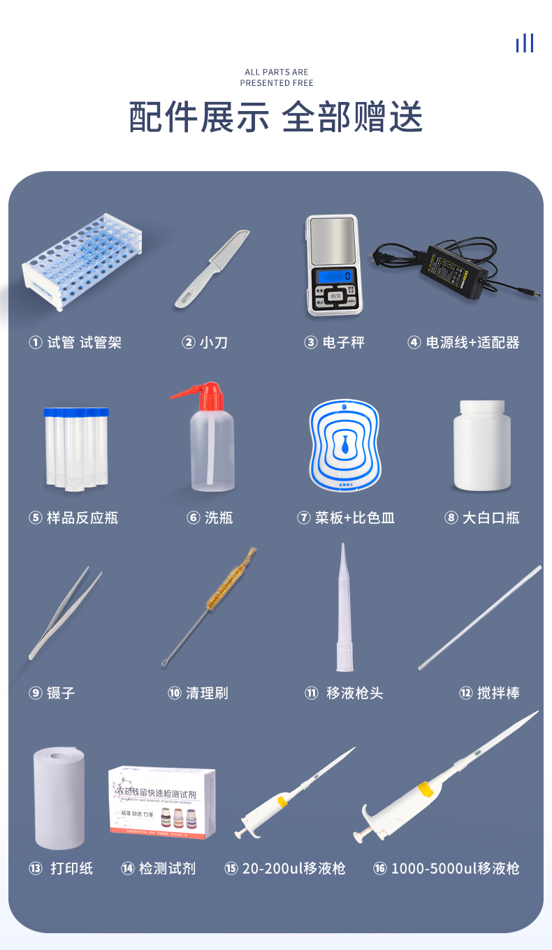 檢測標準:依據國家標準方法(GB/T5009.199-2003)以及世界衛生組織WHO、世界糧農組織FAO殘留農藥檢測標準、世界環境保護局EPA參照攝入量等要求來設計。采用酶抑制率比色法對水果、蔬菜等農林產品中有機磷和氨基甲酸酯類農藥含量進行快速準確的檢測。