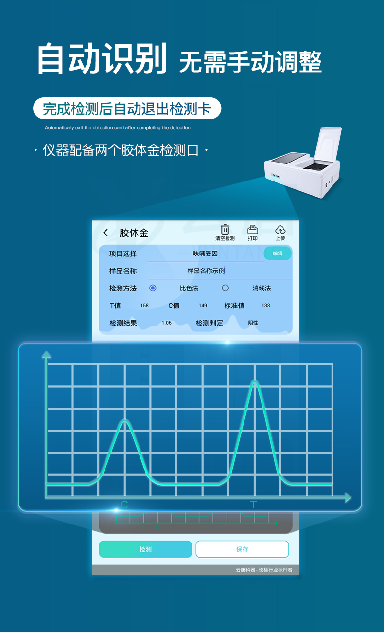 11.5、曲線形式:直插式掃描方式,顯示金標(biāo)卡圖像,實時生成、識別CT曲線圖,無需手動調(diào)整,完成檢測后自動退出檢測卡。兼容市場上其他金標(biāo)卡,使用耗材不受限制。