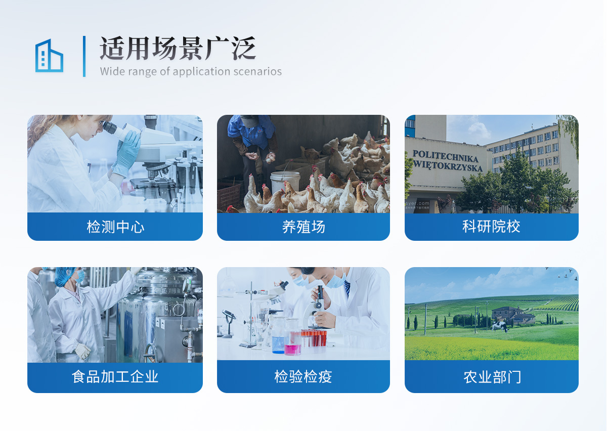 該瘦肉精檢測儀為集成化食品安全快速檢測分析設備,目前已于食藥監局、衛生部門、高教院校、科研院所、農業部門、養殖場、屠宰場、食品肉產品深加工企業及檢驗檢疫部門等單位廣泛使用。