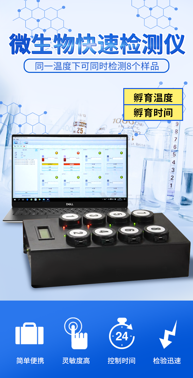 微生物細菌檢測儀檢測樣本只需1ml/1g;同一溫度下可同時檢測8個樣品. 熱線:133-7109-8225